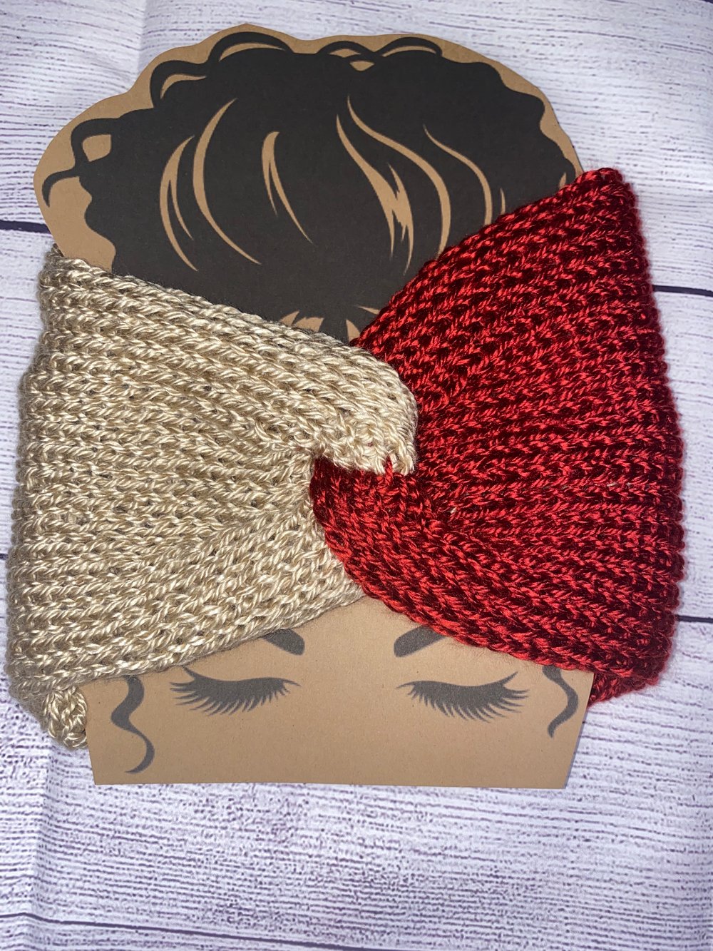 Crochet turban style headband/ear warmers hand crocheted with 100% Acrylic.